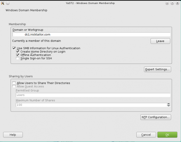 • Inside the Domain Or Workgroup type the Domain DC1.NICKTAILOR.COM